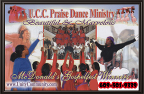 for giving us this wonderful opportunity. In 2009 UCC Praise Dance were blessed to be a finalist out of over 80,000 participants of auditions for the McDonald's Gospel Fest. This historical event was held at the Prudential Center in Newark, New Jersey. The event had starring the legendary Patti LaBelle and Donnie McClurkin on June 13, 2009. UCC Praise Dance Ministry performs constantly throughout America at many prestigious events. Many people have said to us and we have received many letters and emails about how our style of praise dance has helped them. We are honored and blessed to be considered by many as innovators, trendsetters, and positive role models through the praise dance ministry. Through the grace of God, we thank McDonald's Gospelfest and its Producer and Director Mr. Curtis Farrow for their hard work and dedication to have such a wonderful venue for young people and many to enjoy the beauty of the performing arts and Gospel music. We also pray that we can encourage young people and other churches to use praise dance as a vehicle to attract or give young people positive activities praising the Lord. UCC Praise Dance Ministry also